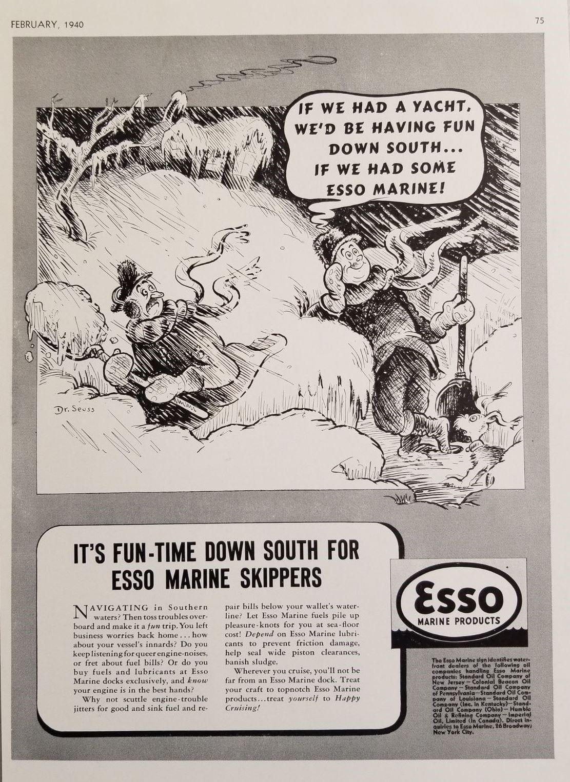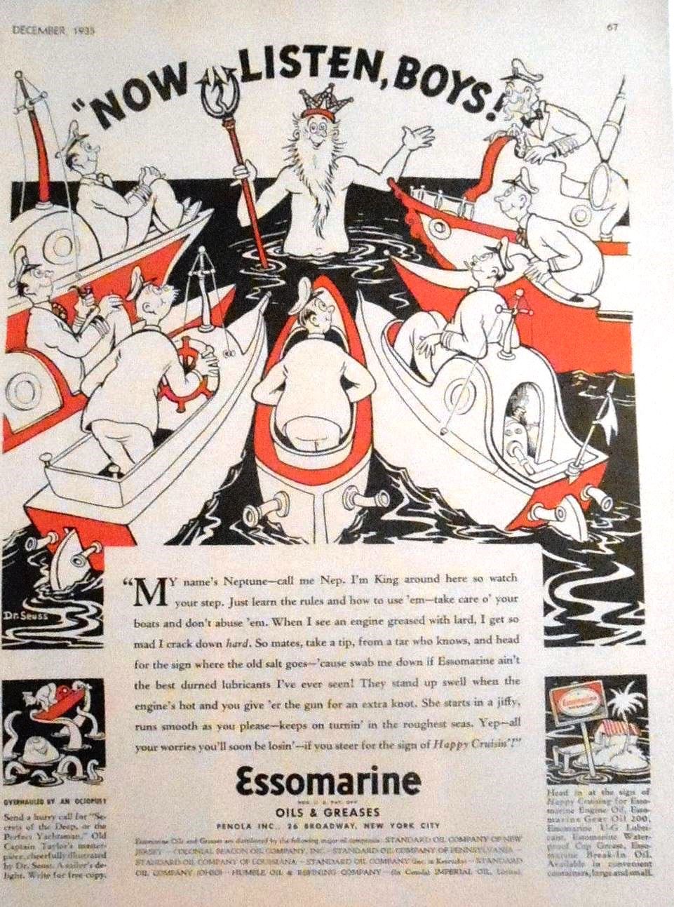 Simultaneously, Seuss was penning advertisements for another Standard Oil product, Esso motor oil.