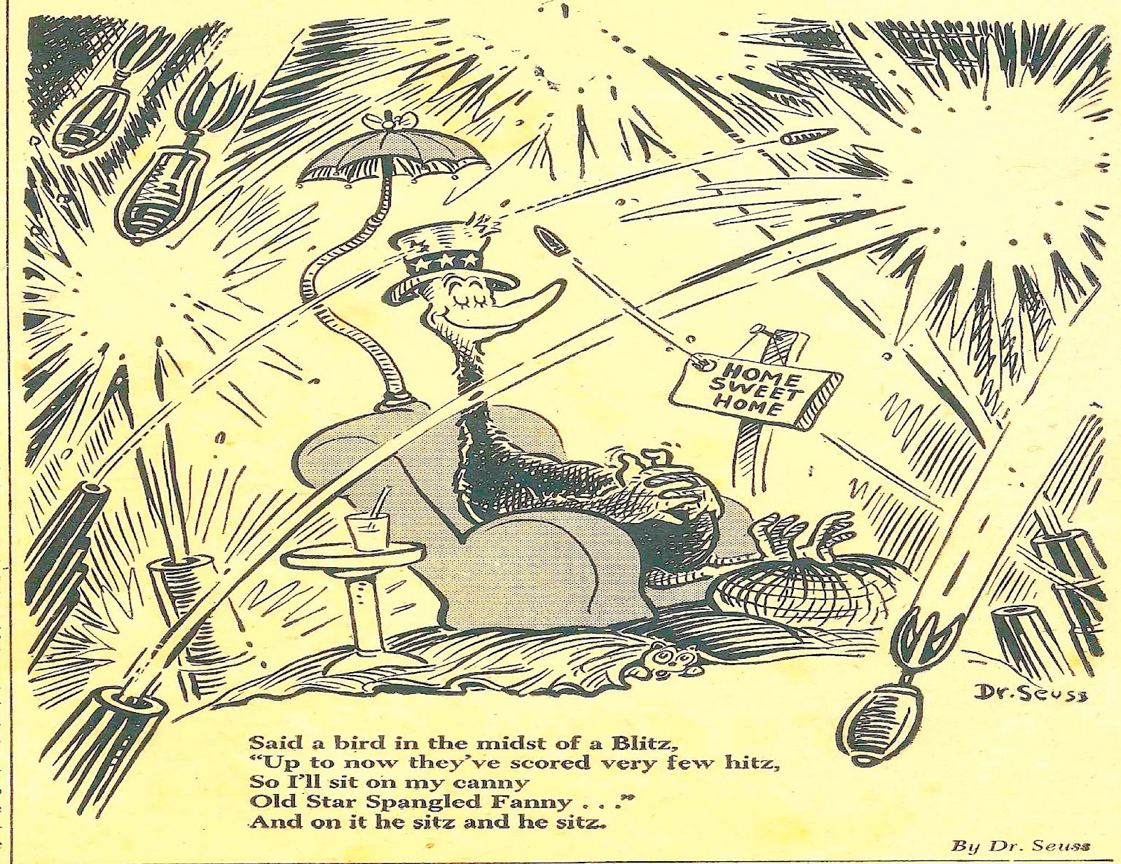 In 1940, Dr. Seuss became the chief editorial cartoonist for the left-leaning New York newspaper PM, where he drew over 400 cartoons lambasting Axis leaders and American isolationism.