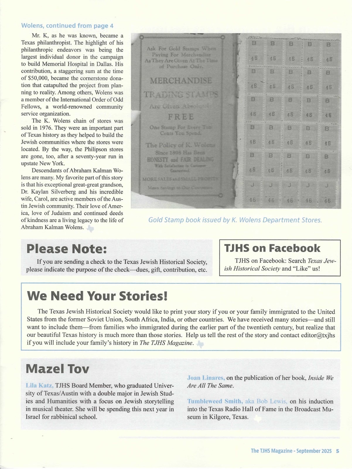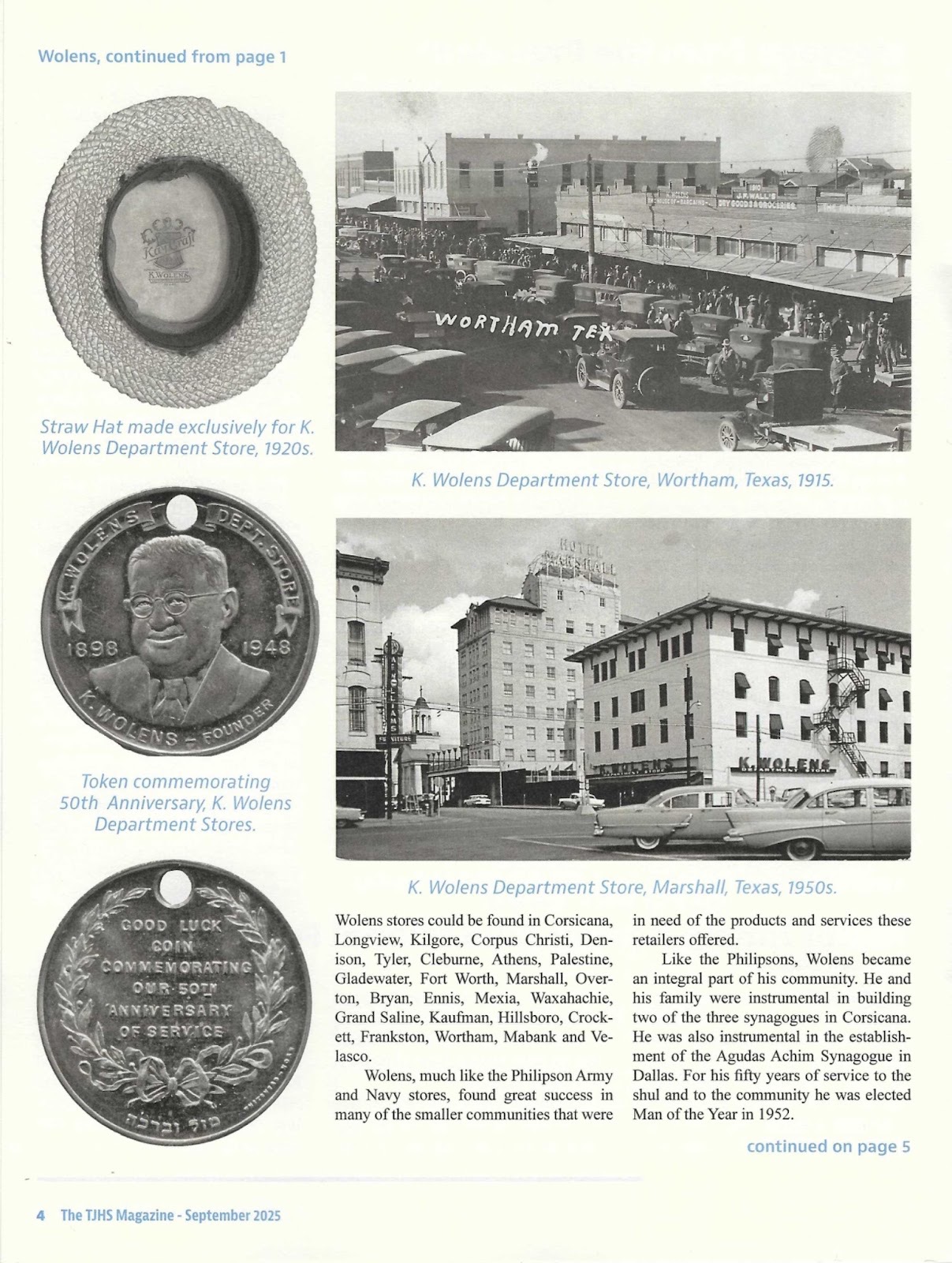 In September 2025, I was honored to share part of that collection with the Texas Jewish Historical Society for the cover story of their monthly magazine. I chose K. Wolens for the Texas connection of course, but also because, like my own family’s stores, Wolens became an integral piece of the communities he served during the store’s heyday.