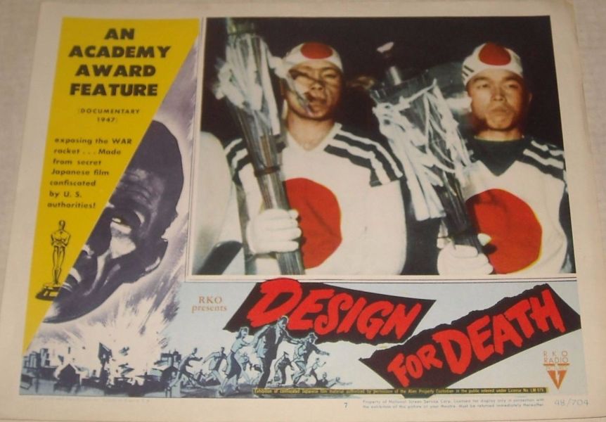 An original lobby card for the 1947 documentary Design for Death, produced by RKO and written by Dr. Seuss and his wife, Helen Geisel.