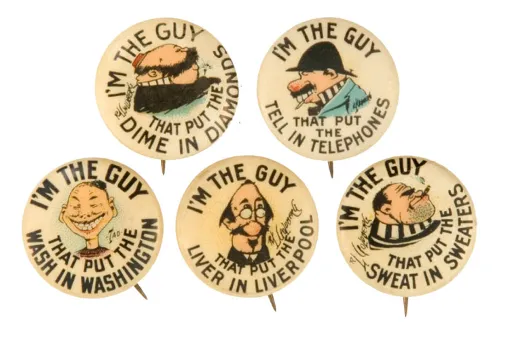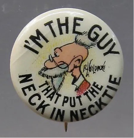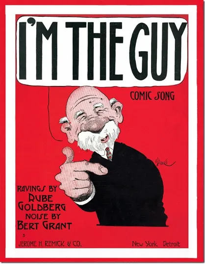 You’ve heard the formula: "He’s the guy who put the [blank] in [blank]." Well, Goldberg capitalized on that formula, with punny variations that he published in comic strips and put on merch like cigarette carton buttons, even writing and recording a comic song called “I’m the Guy.”