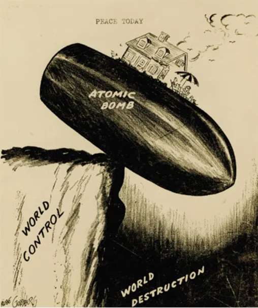 Few people associate Goldberg with serious work, but Goldberg’s political cartoons raised the standards for his craft, and in 1948he won the Pulitzer Prize in editorial cartooning for his “Peace Today” panel, which illustrated the fear around rising Cold War tensions and the potential for the atomic bomb to bring us all to the brink of disaster.